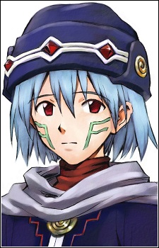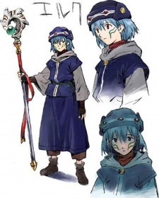 Elk's PC is a young, blue-haired boy wearing dark blue robes. He almost always has a gloomy expression on his face. In terms of appearance, he is an almost identical twin of Tsukasa, the only difference being minute changes in their robes, gloves, and hat, and a change in color scheme. Tsukasa is mostly gray and brown while Elk is blue and gray. Elk's face tattoo is also slightly different.