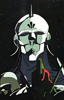 The mysterious commander of the Crossbone Vanguard forces. Iron Mask is actually Cecily's father Carozzo, a brilliant scientist who married into the Ronah family but was then abandoned by his wife Nadia. Hiding his shame and humiliation behind a metal mask, Carozzo turned himself into an artificially enhanced cyber-Newtype in order to help realize the ambitions of his father-in-law Meitzer Ronah. As Iron Mask, he possesses superhuman strength and mental powers, and a ruthless dedication to the Crossbone Vanguard's ideals. (Source: Gundamofficial.com)