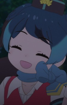 Passenger Pigeon has long blue hair, with green stripes on the sides. As with most other bird Friends, her bangs point towards the middle, resembling a beak. Her eyes are red, with no shine, symbolizing that her animal counterpart is extinct. Her outfit mirrors that of a flight attendant uniform, which includes a navy blue side cap, a salmon vest and bow tie that go over a white shirt with puffy sleeves. In addition, she has a salmon skirt, and full length tights, that go from white at the top, to blue on the bottom, and she wears high heels.
