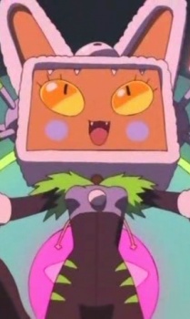 A cat-like, 12-year old hacker prodigy; trickery and sabotage are her main strategies, but she won't hesitate to blast an opponent off the course either. She controls her ship via a dynamic footpad, which resembles a Dance Dance Revolution platform. She sees the Great Race as nothing more than a game. It was Paradice that reveals the 'true nature' of the Ultimate Prize to Molly during their race. She is seen again, briefly, in Make Way! when Eva runs to the docks looking for Rick.