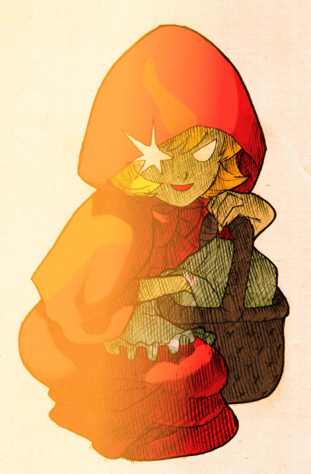 She was created as a way of showing that humans can be more terrifying and bloodthirsty than any monster. She may also be a reference to Roald Dahl's version of the Red Riding Hood story, in which Red shoots the wolf dead and makes a coat out of him.