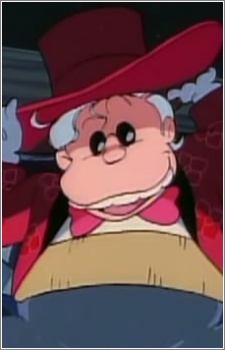 Setan mimpi kecil yang pendek, mengenakan pakaian merah dengan topi tinggi dan kacamata hitam kecil.