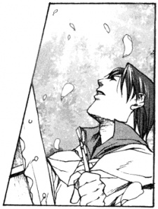 The last time we see Roy is in the final chapter. He is painting outdoors, his attention turned upward to the sky where sakura petals float after Lenneth renewed Midgard and Asgard with her powers of Creation.