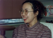 TAKAGUCHI Satosumi, creator of such popular shôjo manga as Hana no Asuka-gumi!, at her studio in Jan. '96. I tagged along with her then-editor from Kadokawa, SHIMAOKA Sakae, and representatives from Columbia Edutainment, who were visiting her to discuss the upcoming CD dramatizations of two of her recent works. Takaguchi is the single most organized and responsible shôjo manga artist I have ever met. And to think she used to be a juvenille delinquent! ^o^